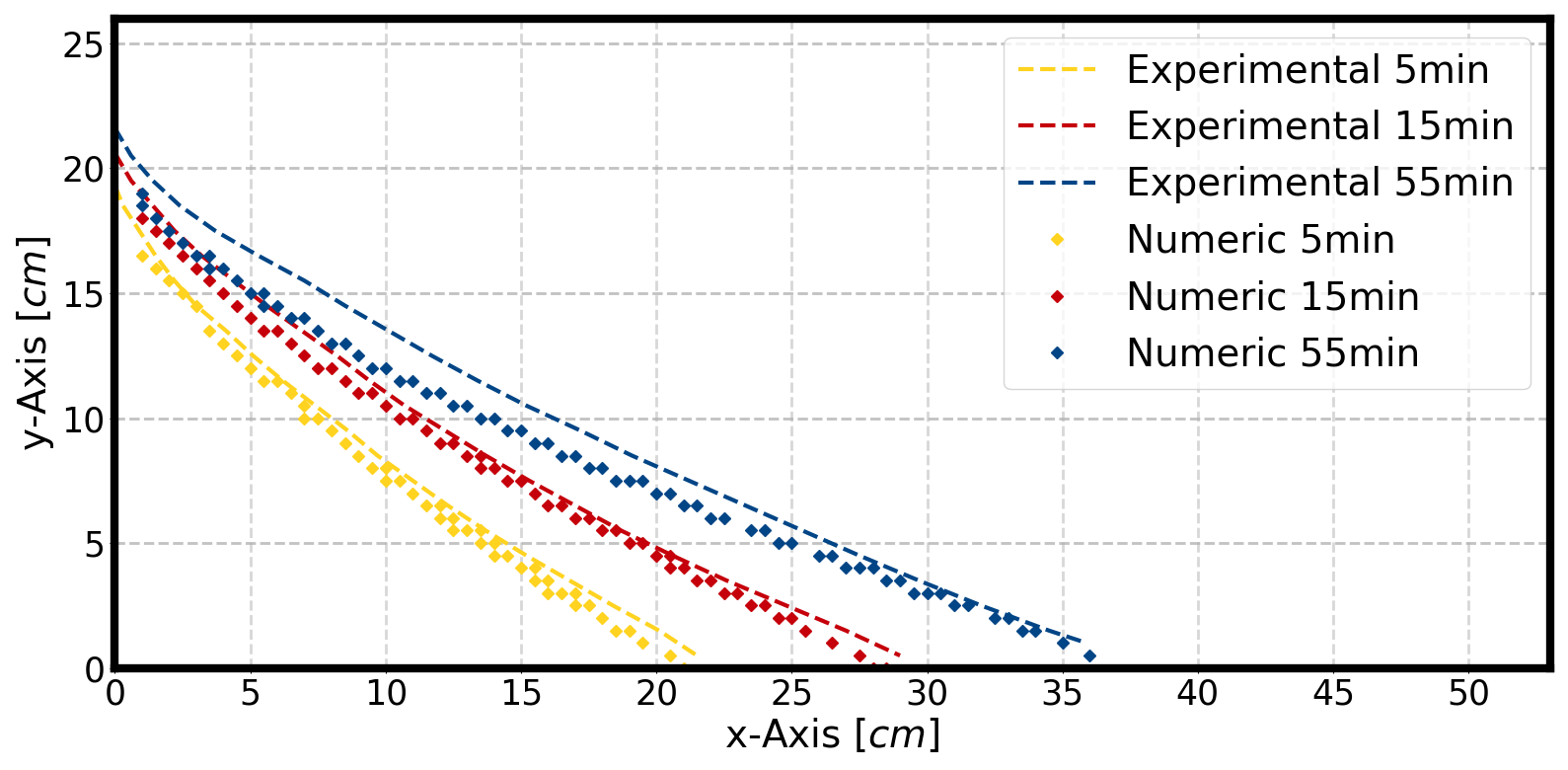 A comparison of numerical and laboratory data is shown in the figure below. The numerical results of OGS-6 coincide with those of OGS-5 and likewise with the laboratory observations.