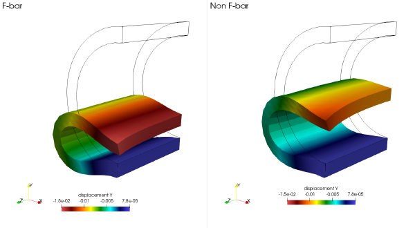 F-bar on large deformation problems with locking