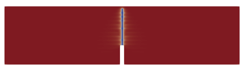 Simulated crack path (phase-field) for the lamination orthogonal and the parallel are shown below: