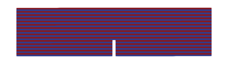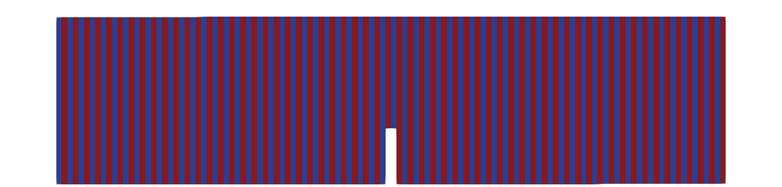 We simulate three point bending tests performed on lamination orthogonal and parallel. The layer lamination is represented through the fracture toughness $G_c$ as shown below.