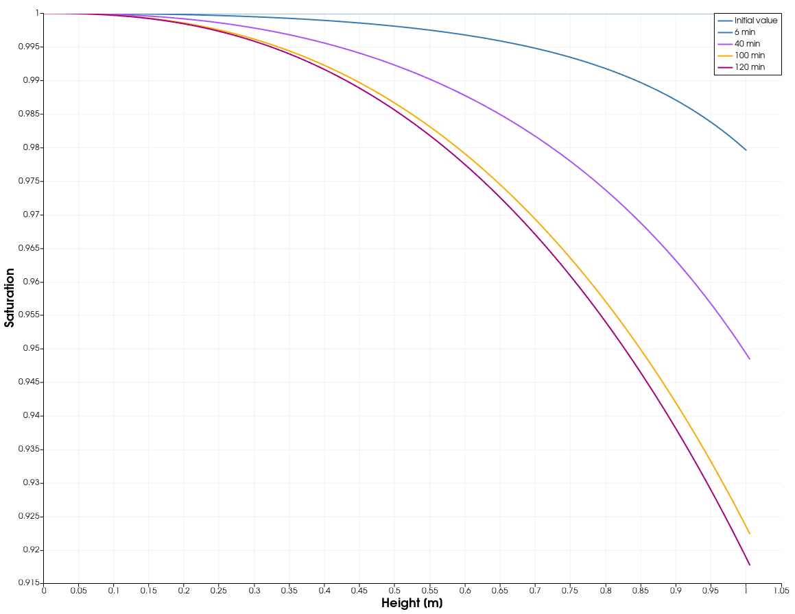 This benchmark simulates the Liakopoulos experiment [1] with an assumption of the Richards’ flow coupled with deformation.
